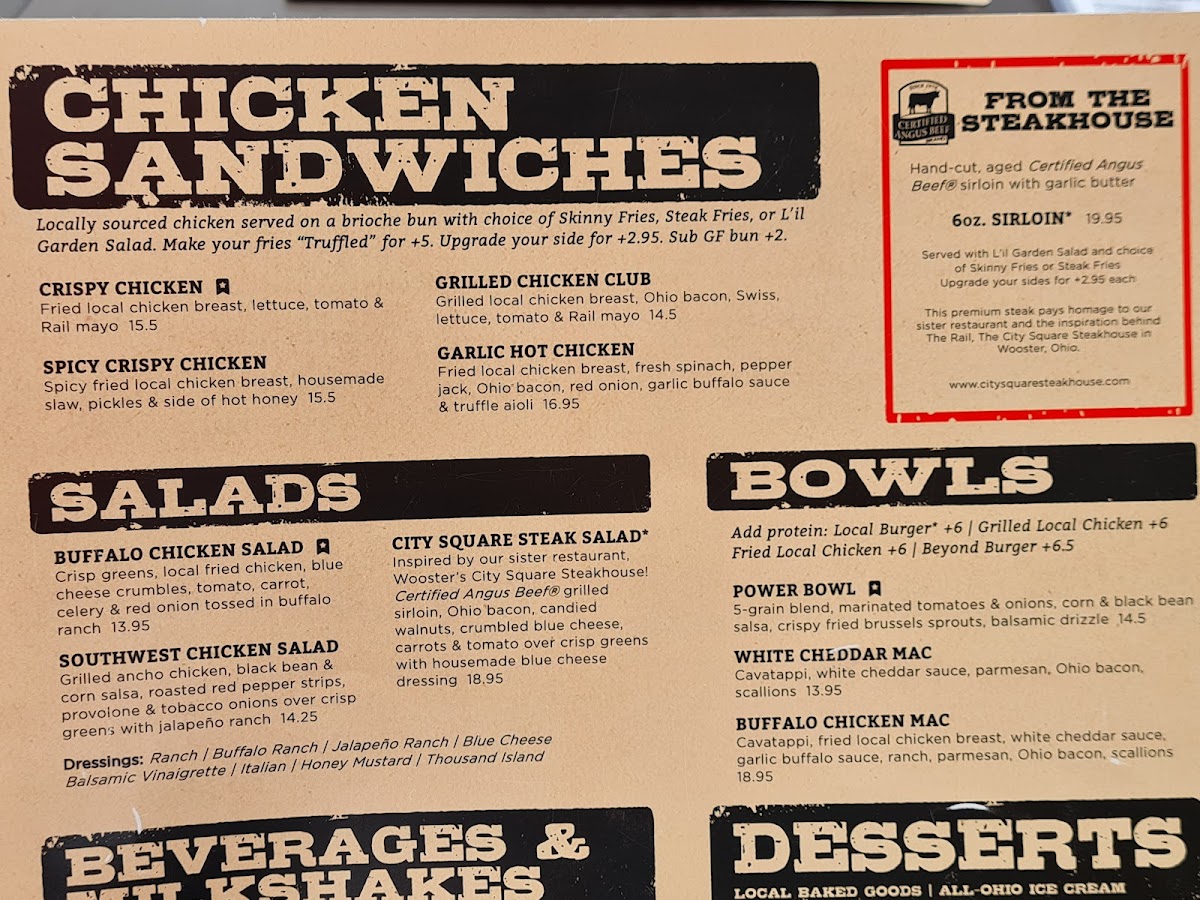 Grilled local chicken breast, bacon, Swiss, lettuce, tomato & Rail mayo